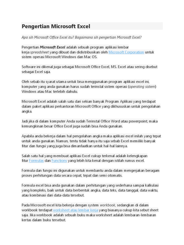Pengertian Microsoft Excel Dan Fungsinya Tutorial Microsoft Excel