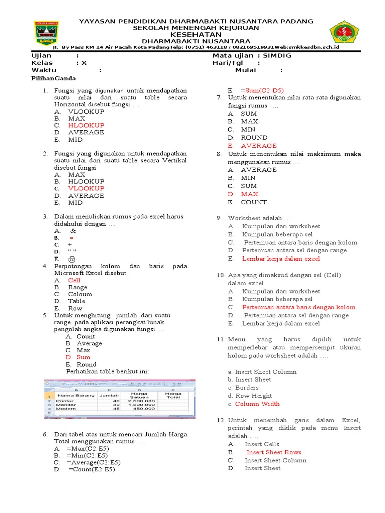 Soal Latihan Microsoft Excel Dasar