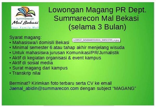 Loker Bekasi On Twitter Info Lowongan Magang Pr Dept Summarecon Mal Bekasi Malbekasi Http T Co W8wb8ky9sb
