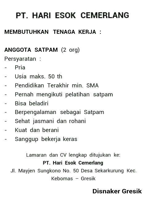Loker Gresik On Twitter Lowongan Kerja Posisi Satpam Di Pt Hari Esok Cemerlang Minimal Lulusan Sma Exp 6 Desember 2013 Http T Co R13hacflmq